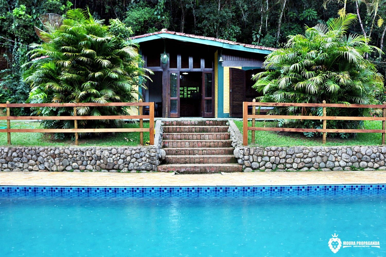 Alugando esse chalé você tem direito de usufruir de toda a propriedade que conta com piscina, lago para pesca, churrasqueiras, salão de jogos, playground, riacho e uma linda área verde